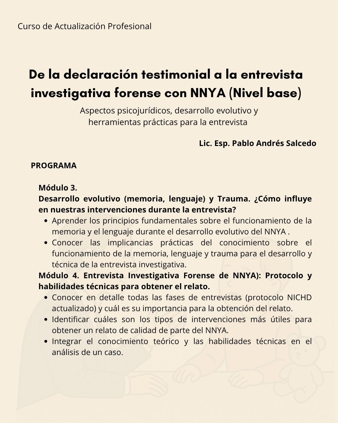 De la declaración testimonial a la entrevista investigativa forense con niños, niñas y adolescentes (Nivel base).